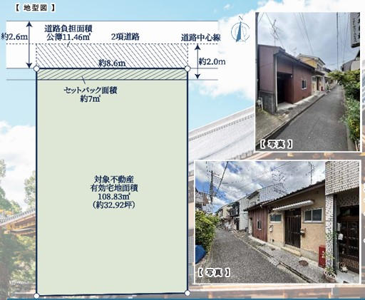 接道 | 北 2.6m(幅員) 私道 8.6m(接面) |