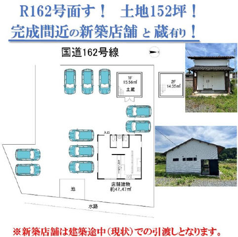 | R162号面す!土地152坪・閑静間近の新築店舗と蔵有り・新築店舗は建築途中での引渡しとなります! |