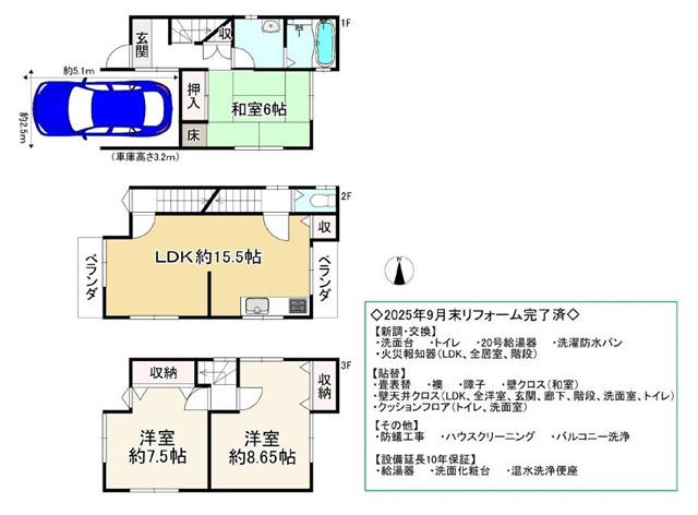 | 駐車5台以上・広々庭付き! |